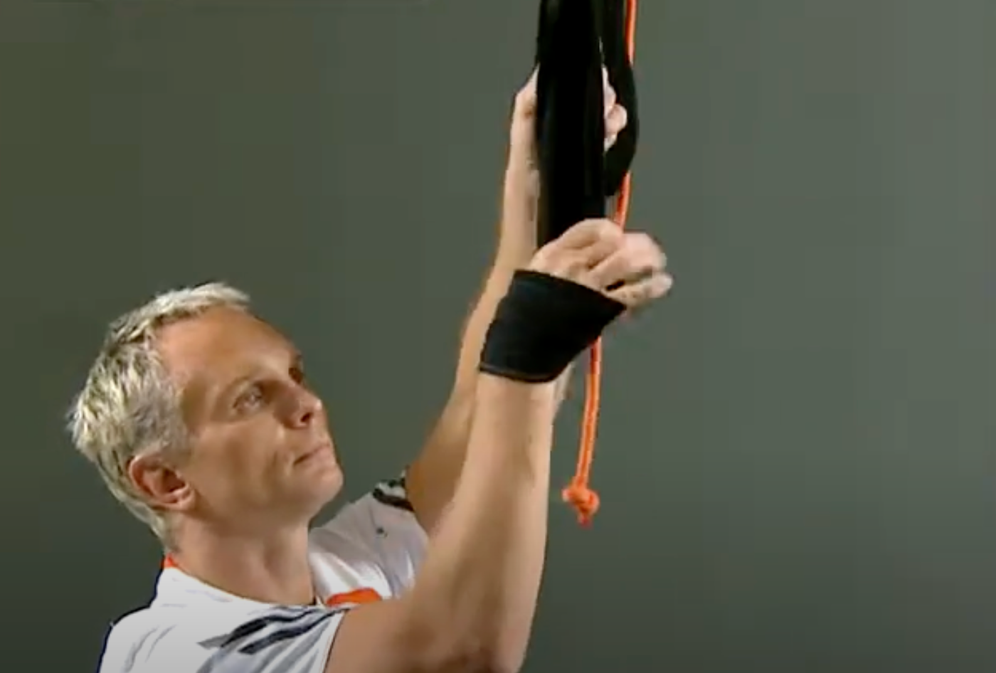 Die Handschlaufen des REHAPE Sling Trainers bieten sehr flexible Haltemöglichkeiten – ob durch Griff in die Schlaufen, interscapular (wie auf dem Video zu sehen), oder an Unterarmen, Armen, Waden und Schenkeln.